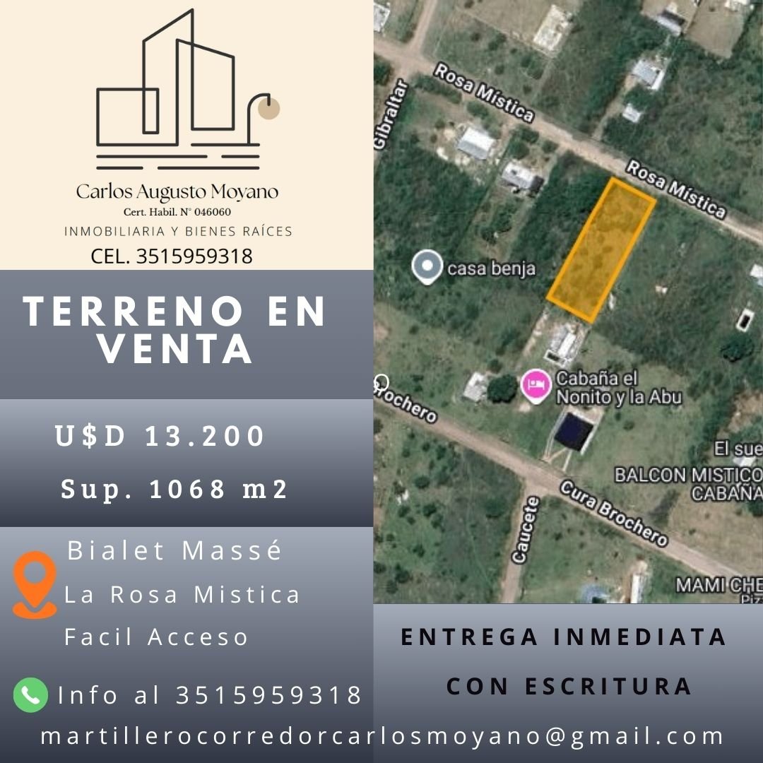 VENTA LOTE DE TERRENO EN BIALET MASSE